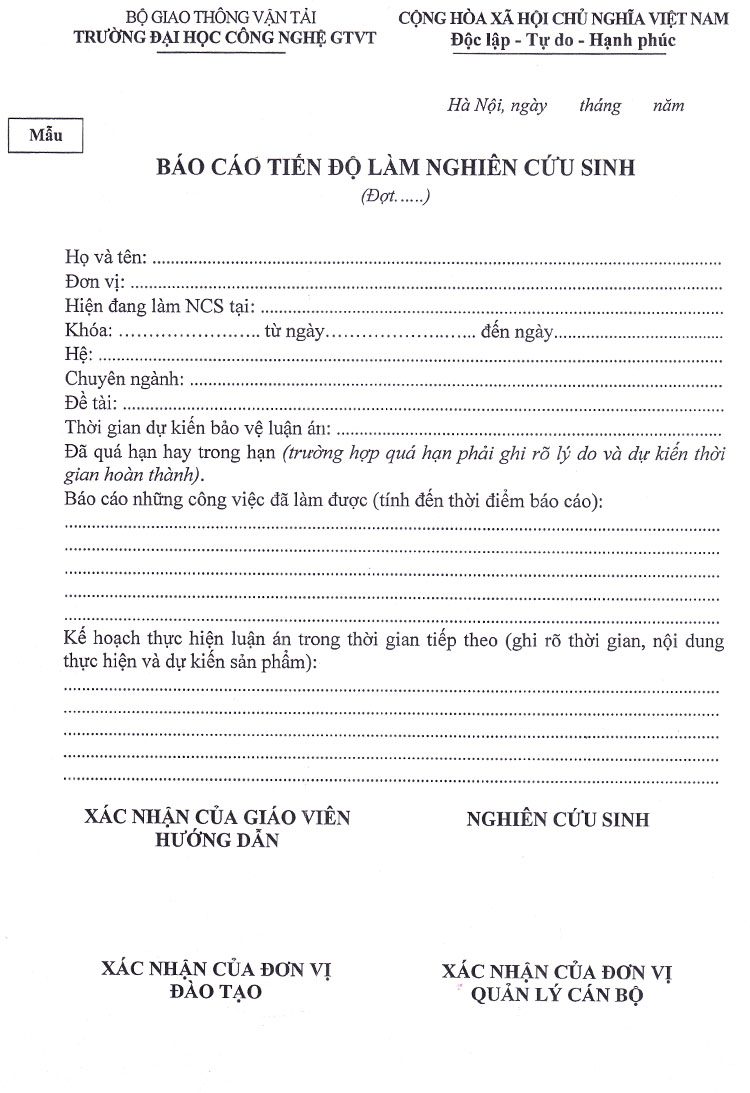 Báo cáo tiến độ làm nghiên cứu sinh hàng năm