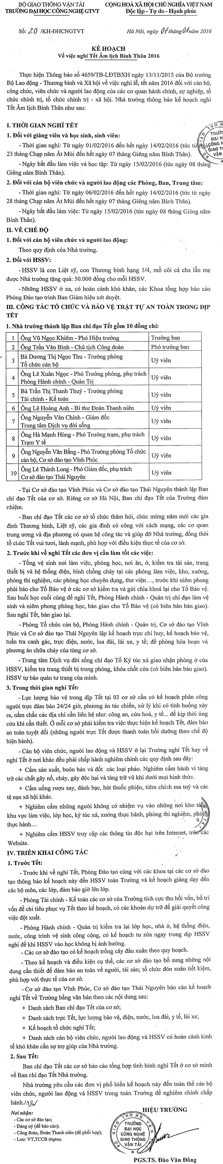 Kế hoạch nghỉ Tết Âm lịch Bính Thân 2016