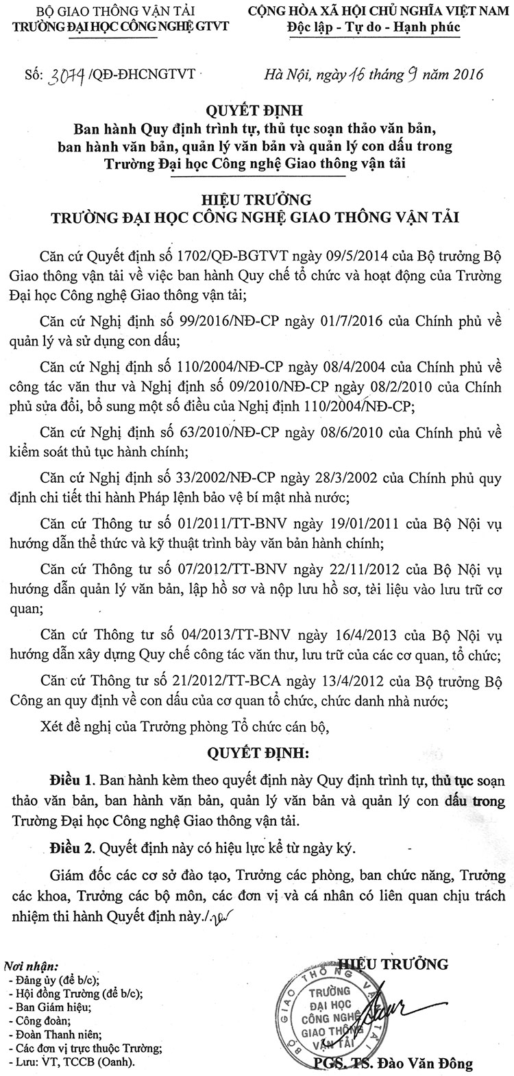 Văn bản nội bộ của Trường Đại học Công nghệ GTVT phục vụ kỳ thi tuyển dụng viên chức...