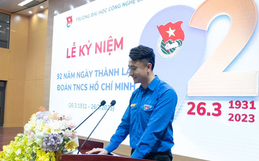 Hòa chung không khí sôi nổi của tuổi trẻ cả nước chào mừng “Tháng Thanh niên”, ngày 24/03/2023, Trường Đại học Công nghệ GTVT(UTT) đã tổ chức Lễ kỷ niệm 92 năm Ngày thành lập Đoàn TNCS Hồ Chí Minh (26/3/1931-26/3/2023) nhằm ôn lại truyền thống vẻ vang của Đoàn và biểu dương những thành tích của tuổi trẻ của Trường.