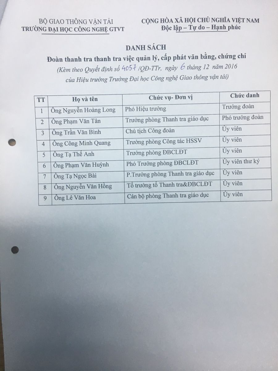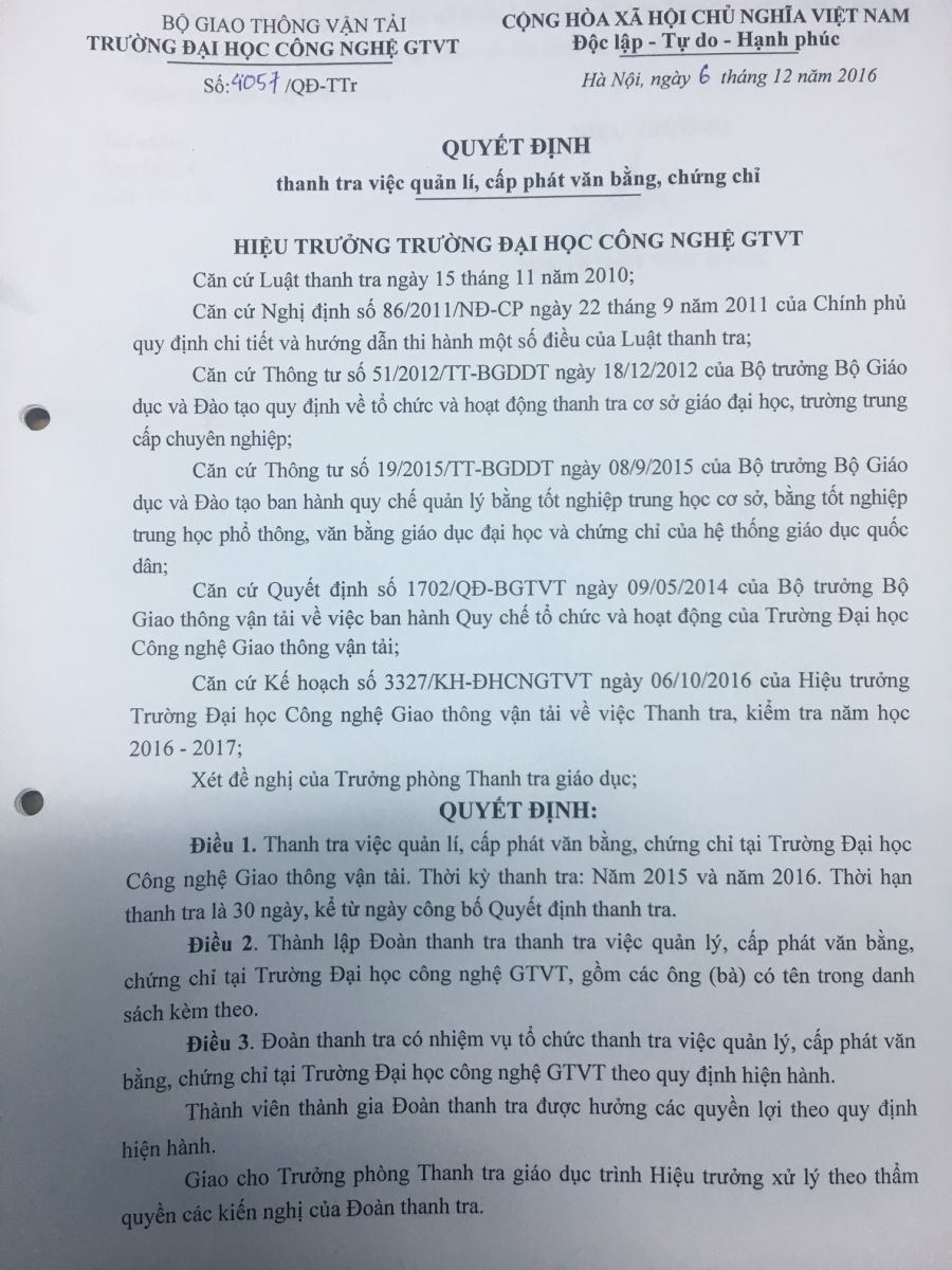 Quyết định thanh tra việc quản lí, cấp phát, văn bằng chứng chỉ
