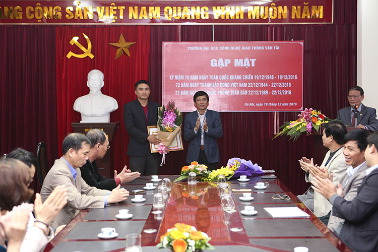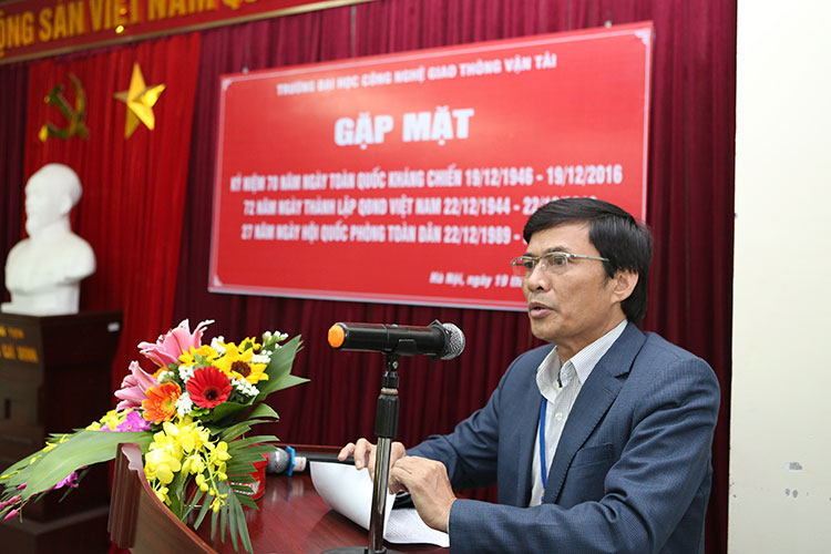 Nhân dịp kỉ niệm 70 năm ngày Bác Hồ ra lời kêu gọi toàn quốc kháng chiến (19/12/1946-19/12/2016), 72 năm ngày thành lập QĐNDVN (22/12/1944 - 22/12/2016) và 27 năm ngày Hội QPTD (22/12/1989 - 22/12/2016). Trường Đại học Công nghệ GTVT tổ chức gặp mặt thân mật các đồng chí lực lượng tự vệ, sĩ quan dự bị và đặc biệt là các đồng chí cựu chiến binh, cựu thanh niên xung phong của Nhà trường đã có thời gian tham gia chiến đấu trên các chiến.