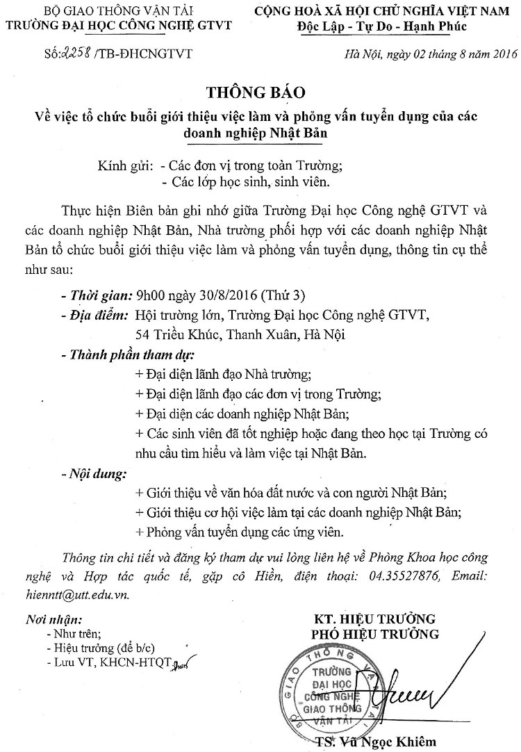 Thông báo tổ chức buổi giới thiệu việc làm và phỏng vấn tuyển dụng của các doanh nghiệp Nhật Bản