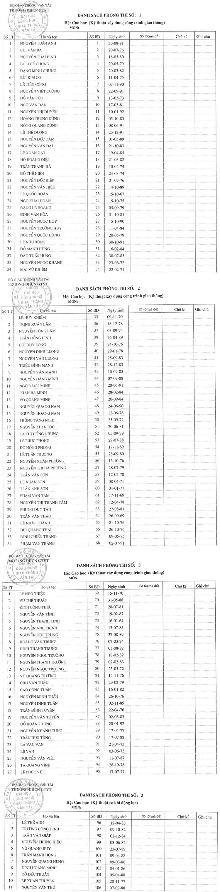 Danh sách phòng thi tuyển sinh Cao học năm 2015