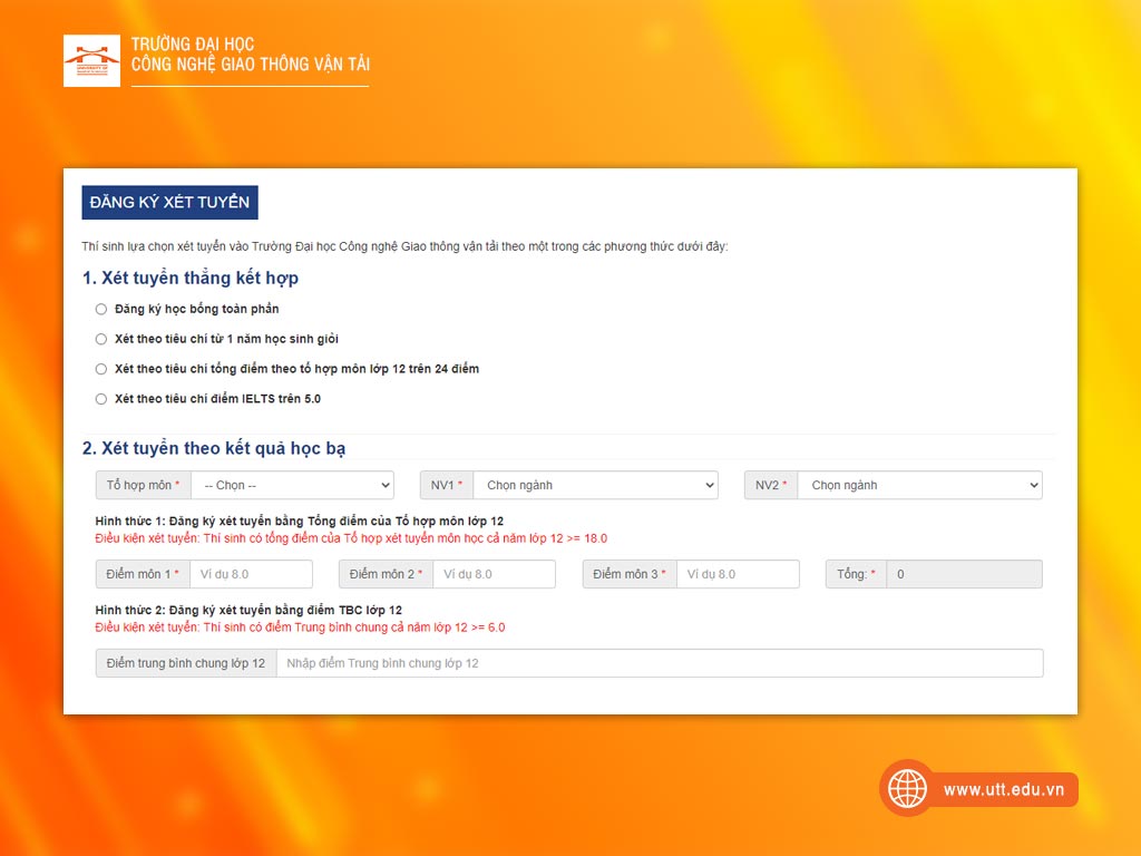 Hướng dẫn đăng ký xét tuyển trực tuyến vào Trường Đại học Công nghệ GTVT