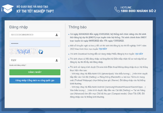 Bước 1: Thí sinh truy cập đường link https://thisinh.thithptquocgia.edu.vn/