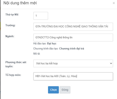 Bước 4: Thêm mới/Chỉnh sửa các nguyện vọng đăng ký xét tuyển