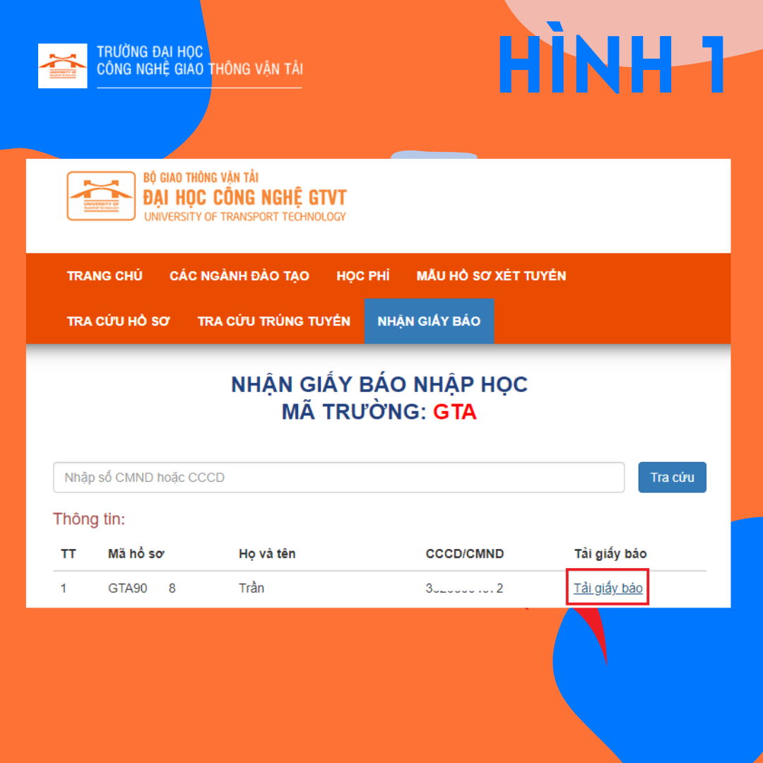 Trường Đại học Công nghệ GTVT hướng dẫn quy trình nhập học cho sinh viên Khóa 72 bằng hình thức trực tuyến. Các thí sinh trúng tuyển thực hiện theo 2 hướng dẫn dưới đây để thực hiện Nhập học. Thời gian nhập học từ ngày 18/8 đến hết ngày 5/9/2021.