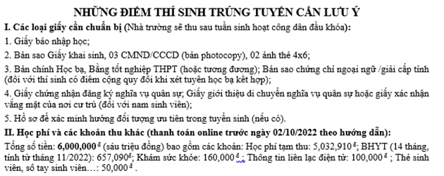 - Thông tin cần ghi nhớ là MÃ SINH VIÊN, mã này dùng để thanh toán các khoản nhập học và truy cập hệ thống đào tạo (hướng dẫn trong thời gian sinh hoạt công dân).