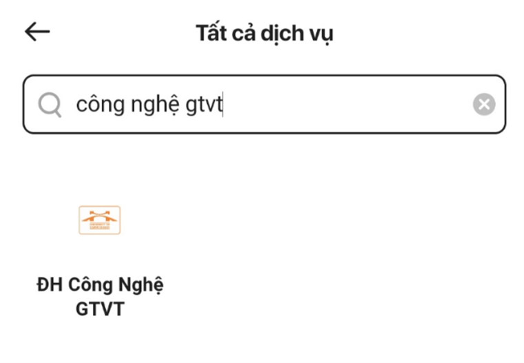 Bước 2: Nhập từ khóa tìm kiếm “công nghệ GTVT”, chọn kết quả tìm kiếm “ĐH Công Nghệ GTVT”