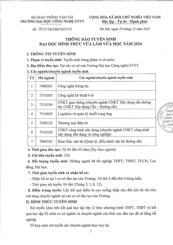 Thông báo tuyển sinh Đại học hình thức vừa làm vừa học năm 2024