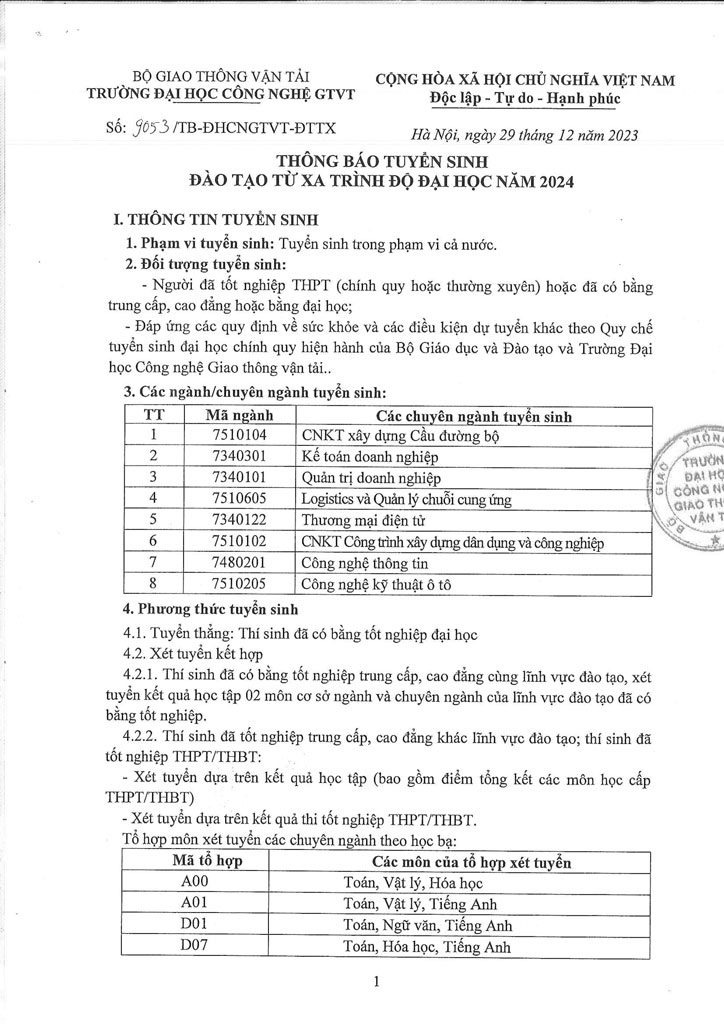 Thông báo tuyển sinh Đào tạo từ xa trình độ Đại học năm 2024