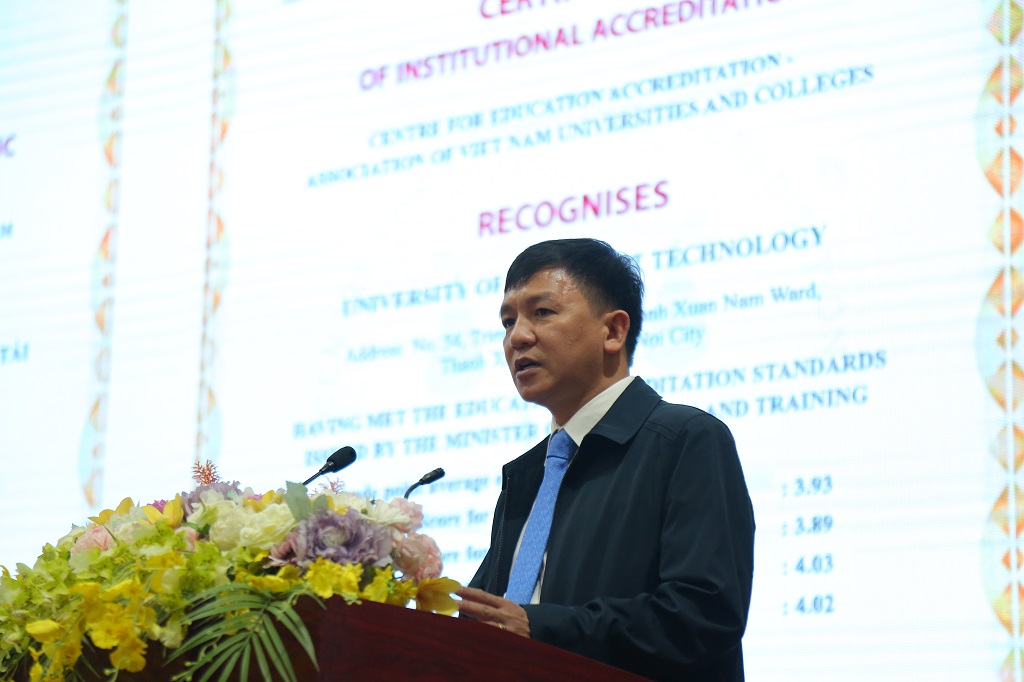 Phát biểu tại buổi lễ, PGS.TS. Phạm Quốc Khánh - Phó Cục trưởng Cục Quản lý chất lượng (Bộ Giáo dục & Đào tạo) chúc mừng thầy và trò Trường Đại học Công nghệ GTVT bước vào năm học mới và ghi nhận: "Trường Đại học Công nghệ GTVT không chỉ đạt chu kỳ kiểm định giáo dục thứ nhất mà đã là một trong 13 trường hiện tại đạt giấy chứng nhận kiểm định chất lượng chu kỳ thứ 2".