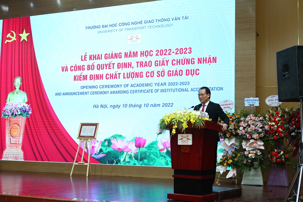 Ngày 10/10/2022, Trường Đại học Công nghệ Giao thông vận tải tổ chức Lễ khai giảng năm học mới (2022-2023) và công bố Quyết định công nhận, trao Giấy chứng nhận Kiểm định chất lượng cơ sở giáo dục.