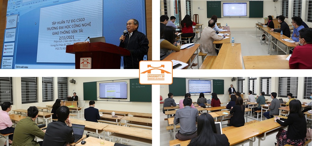Sáng 02/11 tại Hà Nội, Trường Đại học Công nghệ GTVT đã khai mạc lớp tập huấn Phát triển kỹ năng tự đánh giá Cơ sở giáo dục theo Bộ tiêu chuẩn đánh giá ban hành kèm theo Thông tư 12/2017/TT-BGDĐT. Tham dự có lãnh đạo Đảng ủy, Ban Giám hiệu, Hội đồng trường; Công đoàn, Đoàn Thanh niên; lãnh đạo các đơn vị và cán bộ, giảng viên của Nhà trường.