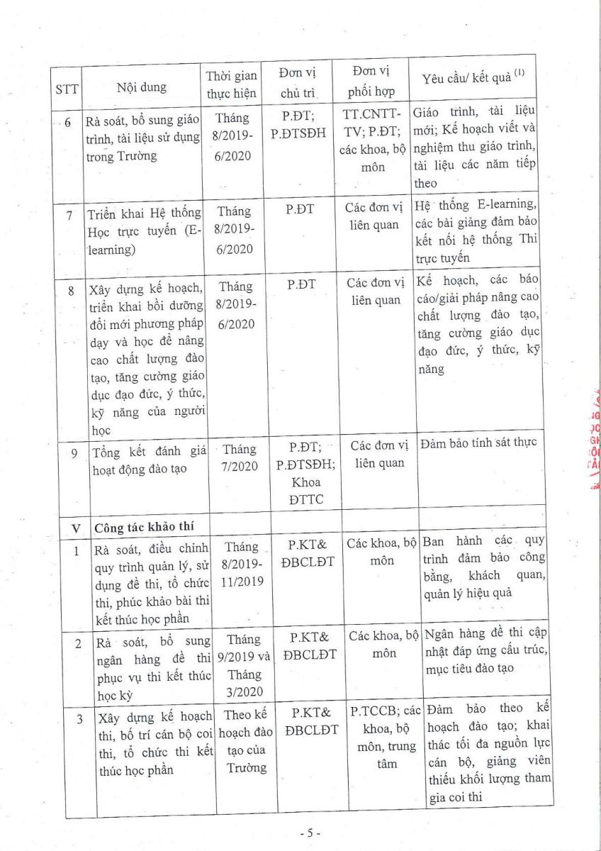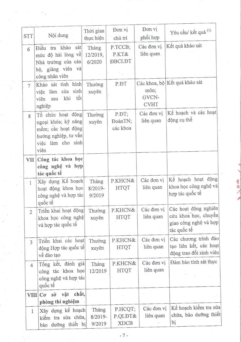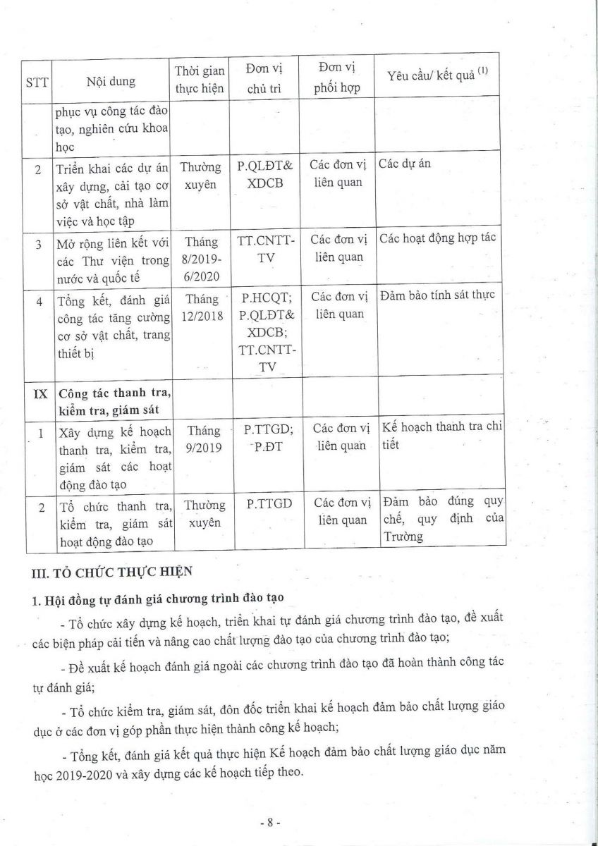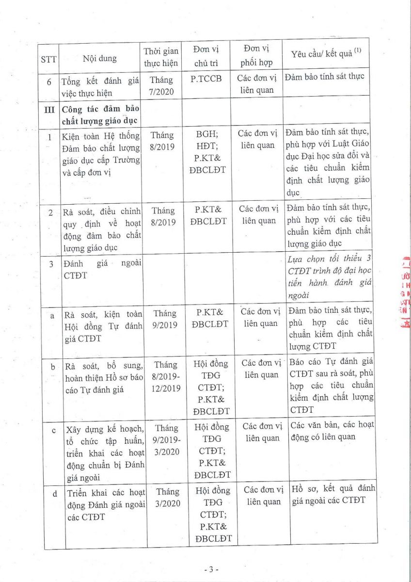 Ngày 26 tháng 8 năm 2019, Hiệu trưởng Trường Đại học Công nghệ GTVT đã ban hành Kế hoạch số 3879/ĐHCNGTVT-ĐBCL về hoạt động Đảm bảo chất lượng giáo dục năm học 2019-2020.