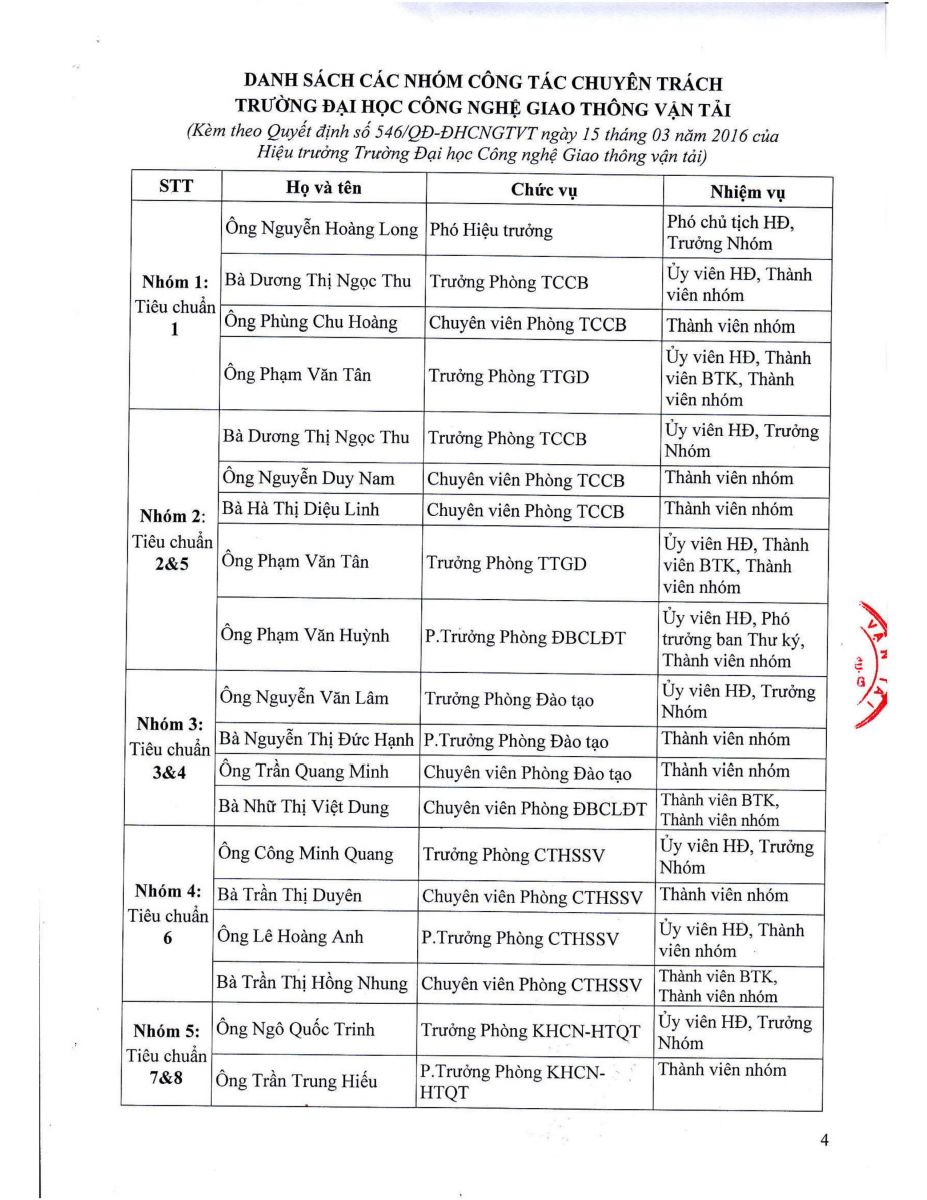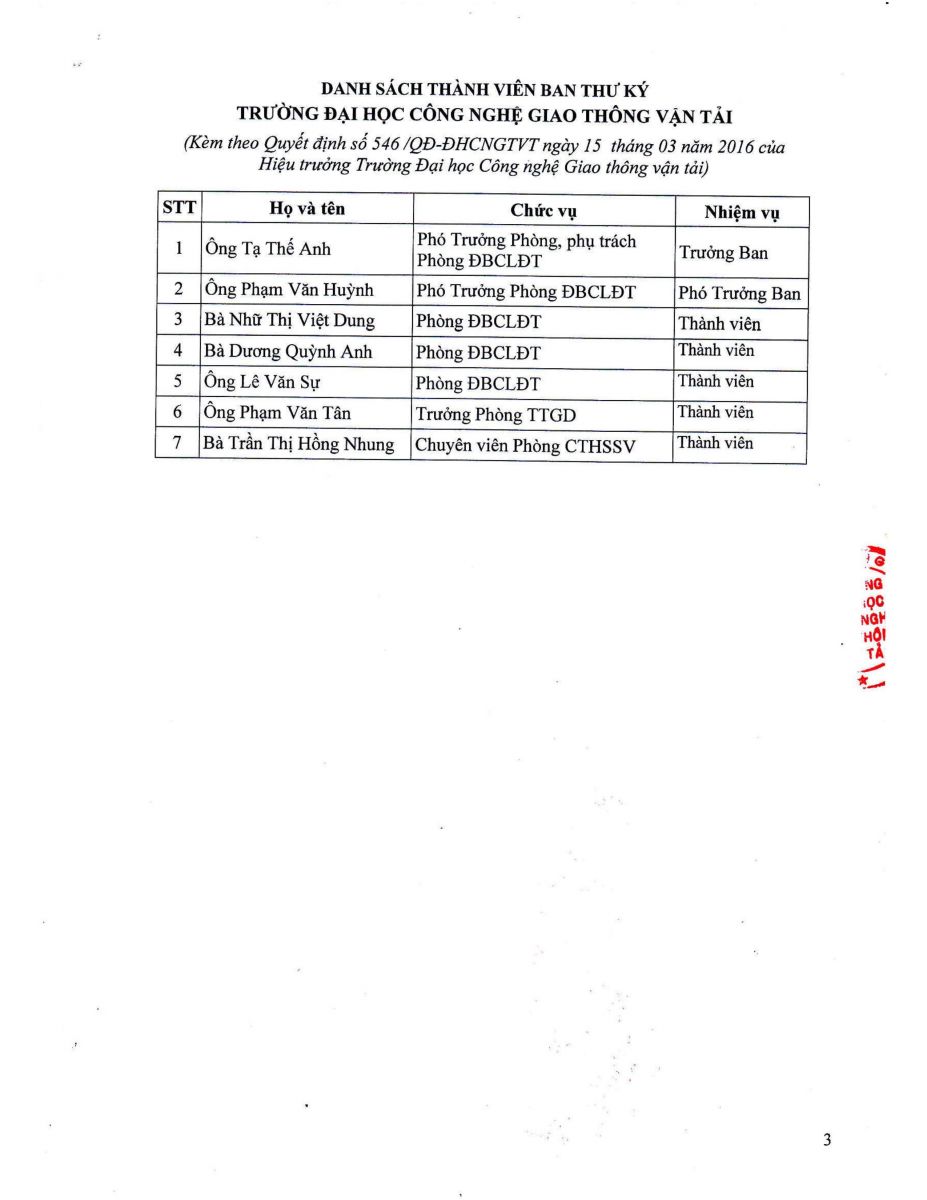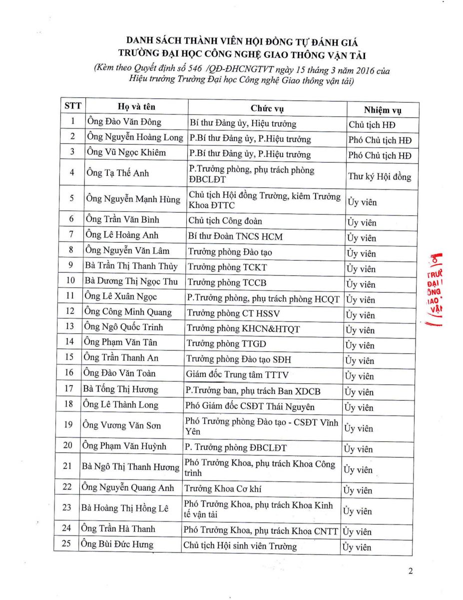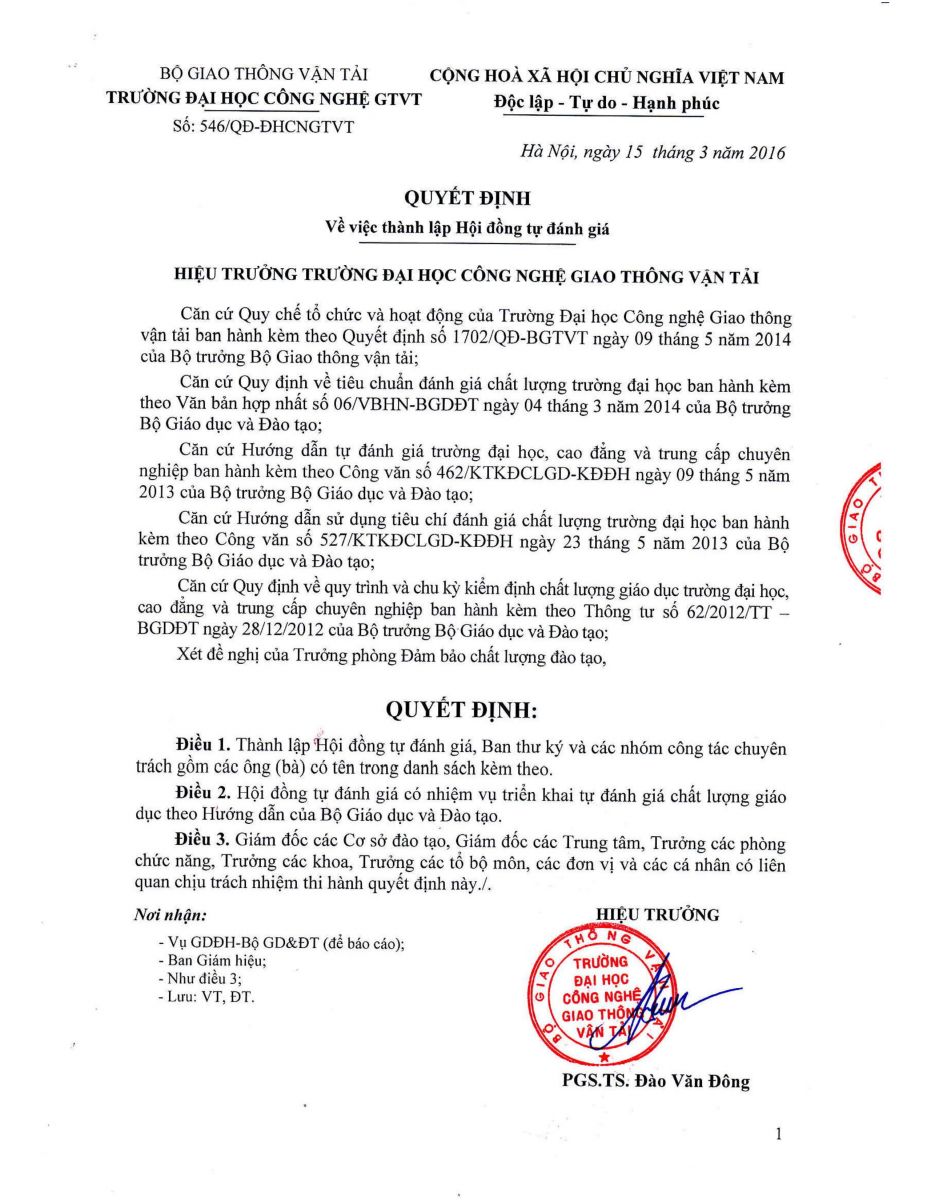 Ngày 15 tháng 3 năm 2016, Hiệu trưởng trường Đại học Công nghệ GTVT đã ban hành Quyết định số 546/QĐ-ĐHCNGTVT về việc thành lập Hội đồng Tự đánh giá lần thứ hai.