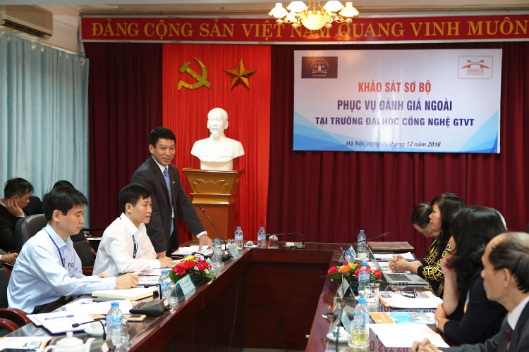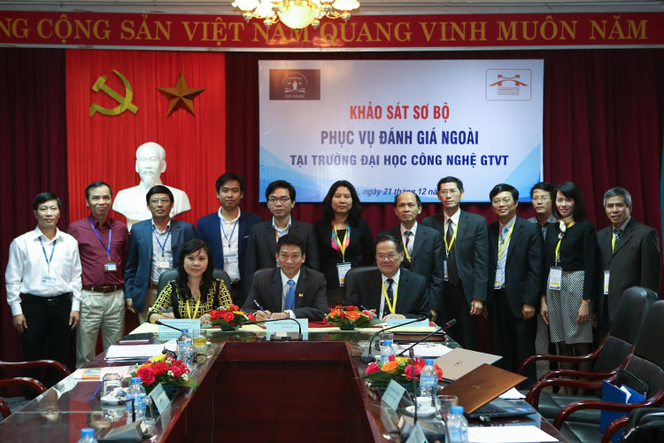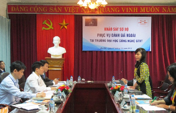 Nhằm chuẩn bị cho hoạt động đánh giá ngoài Trường Đại học Công nghệ Giao thông vận tải sẽ diễn ra từ 05/01 đến 09/01/2017, ngày 21/12/2016 Trung tâm kiểm định chất lượng giáo dục thuộc Hiệp hội các Trường Đại học, Cao đẳng Việt Nam và đại diện Đoàn chuyên gia đánh giá ngoài do GS.TSKH. Đặng Ứng Vận làm trưởng đoàn đã có buổi khảo sát sơ bộ với đại diện Ban Giám hiệu và Hội đồng Tự đánh giá Trường Đại học Công nghệ GTVT.