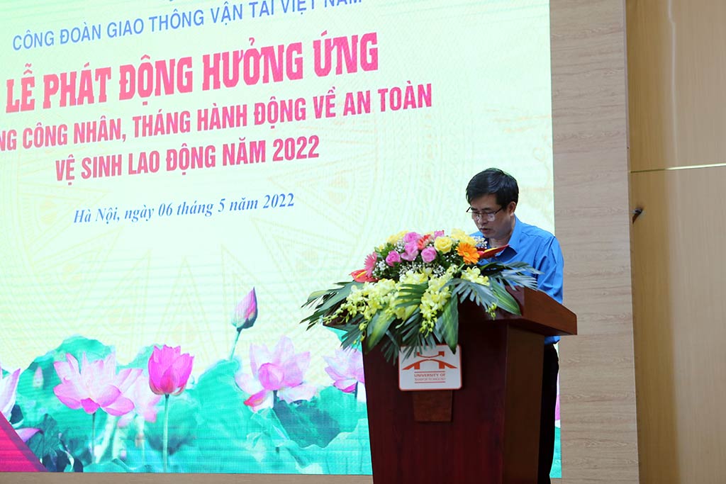 Tại Lễ phát động, Chủ tịch Công đoàn GTVT VN Phạm Hoài Phương đề nghị các cơ quan, đơn vị triển khai thực hiện các hoạt động với chủ đề Tháng Công nhân năm 2022 "Công nhân Việt Nam: Tiên phong, sáng tạo, trách nhiệm, an toàn, thích ứng", Tháng hành động về An toàn, vệ sinh lao động năm 2022 “Tăng cường các biện pháp giảm thiểu rủi ro về an toàn, vệ sinh lao động, cải thiện điều kiện lao động tại nơi làm việc, thích ứng an toàn, linh hoạt và kiểm soát hiệu quả dịch bệnh Covid-19”.