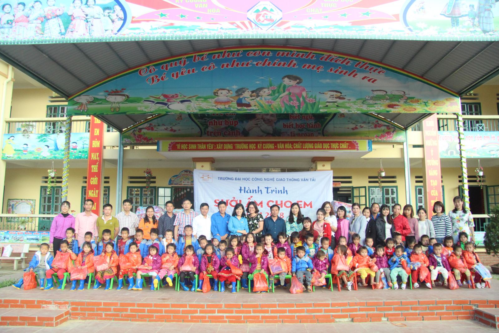Với mong muốn mang tới những món quà thiết thực giúp bà con và các cháu học sinh có một mùa đông ấm áp hơn, trong 3 ngày từ 15-17/11/2018 đoàn công tác của Nhà trường gồm các đồng chí trong Ban Chấp hành Công đoàn Trường và đại diện các đơn vị ở ba cơ sở đào tạo của Nhà trường đã phối hợp với chính quyền địa phương tổ chức tặng quà cho 255 cháu học sinh tại 8 điểm trường của trường Mầm non xã Lùng Sui và 5 hộ gia đình có hoàn cảnh đặc biệt khó khăn. Đây là hoạt động thiện nguyện của Nhà trường thực hiên văn bản chỉ đạo của Bộ trưởng Bộ GTVT và Chủ tịch Công đoàn GTVT Việt Nam ngày 31/10/2018 về việc “Quyên góp, ủng hộ quần, áo ấm và các vật dụng thiết yếu cho đồng bào khó khăn các tỉnh miền núi, vùng sâu, vùng xa bị ảnh hưởng do thiên tai”