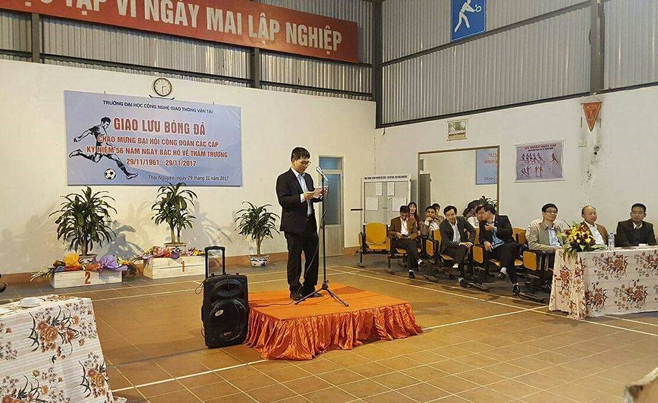Thực hiện kế hoạch Tổ chức các hoạt động văn hóa, thể dục thể thao chào mừng Đại hội Công đoàn các cấp và các sự kiện lớn trong tháng 11, Ngày 29/11/2017, tại Cơ sở đào tạo Thái nguyên, Công đoàn Trường Đại học công nghệ GTVT long trọng tổ chức buổi giao lưu bóng đá giữa các cơ sở đào tạo của Nhà trường. Đây dịp để tập thể CB-VC-NLĐ trong Nhà trường được giao lưu, trao đổi kinh nghiệm và tăng cường hơn nữa tình đoàn kết gắn bó vốn có giữa các các cơ sở đào tạo.