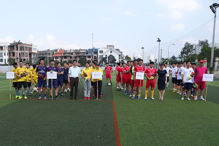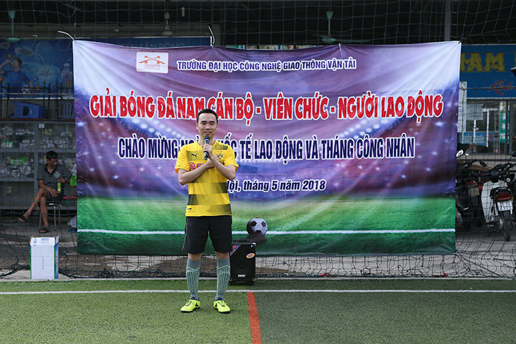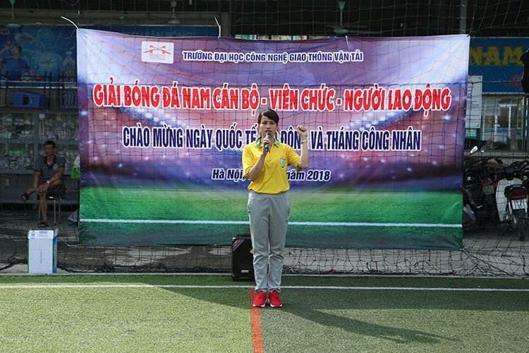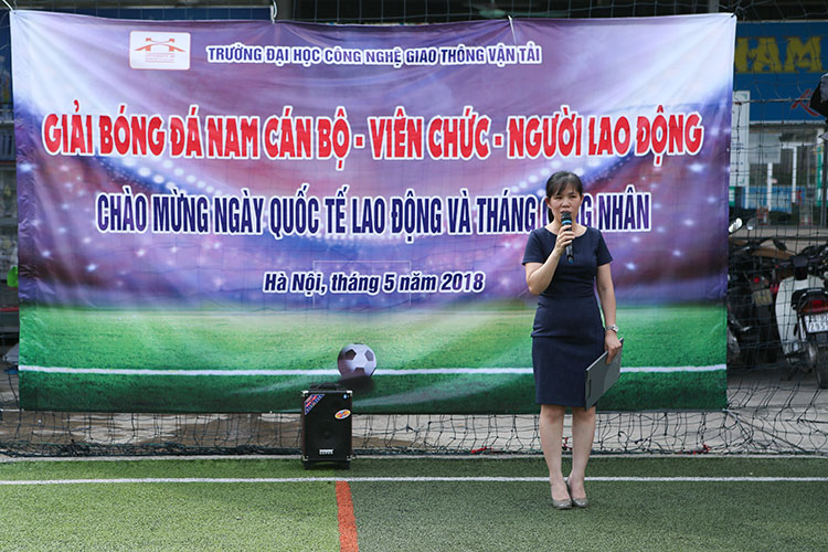 Tại buổi lễ khai mạc Giải bóng đá CN-VC Cơ sở đào tạo Hà Nội, đồng chí Lê Thu Sao - Chủ tịch Công đoàn Trường đã ôn lại lịch sử ngày Quốc tế Lao động 1/5, ý nghĩa của việc Chủ tịch Hồ Chí Minh ký sắc lệnh 56 ngày 29/4/1946 và phát động “Tháng Công nhân” năm 2018, kêu gọi toàn thể cán bộ công đoàn, đoàn viên, CNVCLĐ toàn Trường tích cực thi đua lao động sản xuất góp phần thực hiện thắng lợi các nhiệm vụ của ngành, của Trường. Đồng chí kêu gọi, hưởng ứng “Tháng công nhân” 2018, mỗi CĐCS hãy tổ chức thực hiện ít nhất một hoạt động cụ thể để mang lại lợi ích thiết thực cho đoàn viên, CNVCLĐ.
