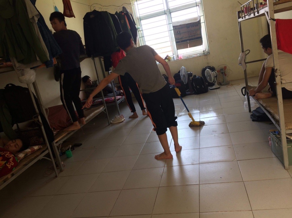 Sinh viên tham gia dọn phòng trong kí túc xá hàng ngày