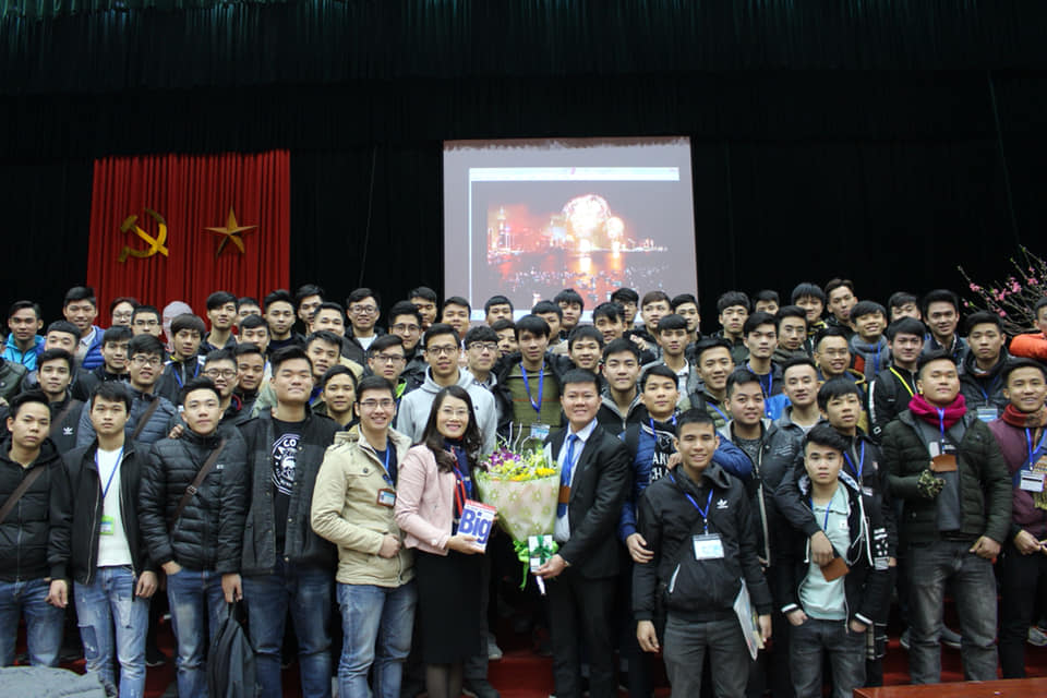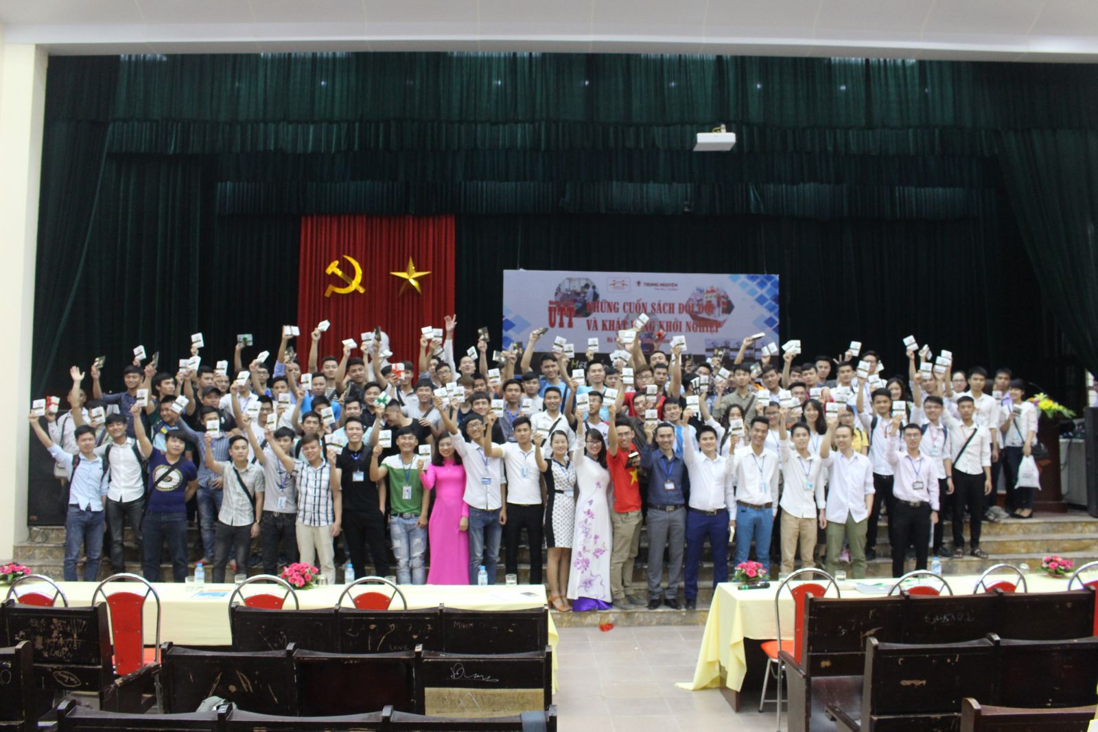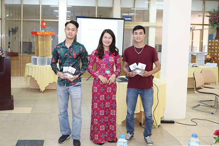 Chụp ảnh cùng Ban Tổ chức và sinh viên trong chương trình “UTT - Những cuốn sách đổi đời và khát vọng khởi nghiệp” mà cô Nguyễn Thị Thu Hằng là người kết nối tổ chức
