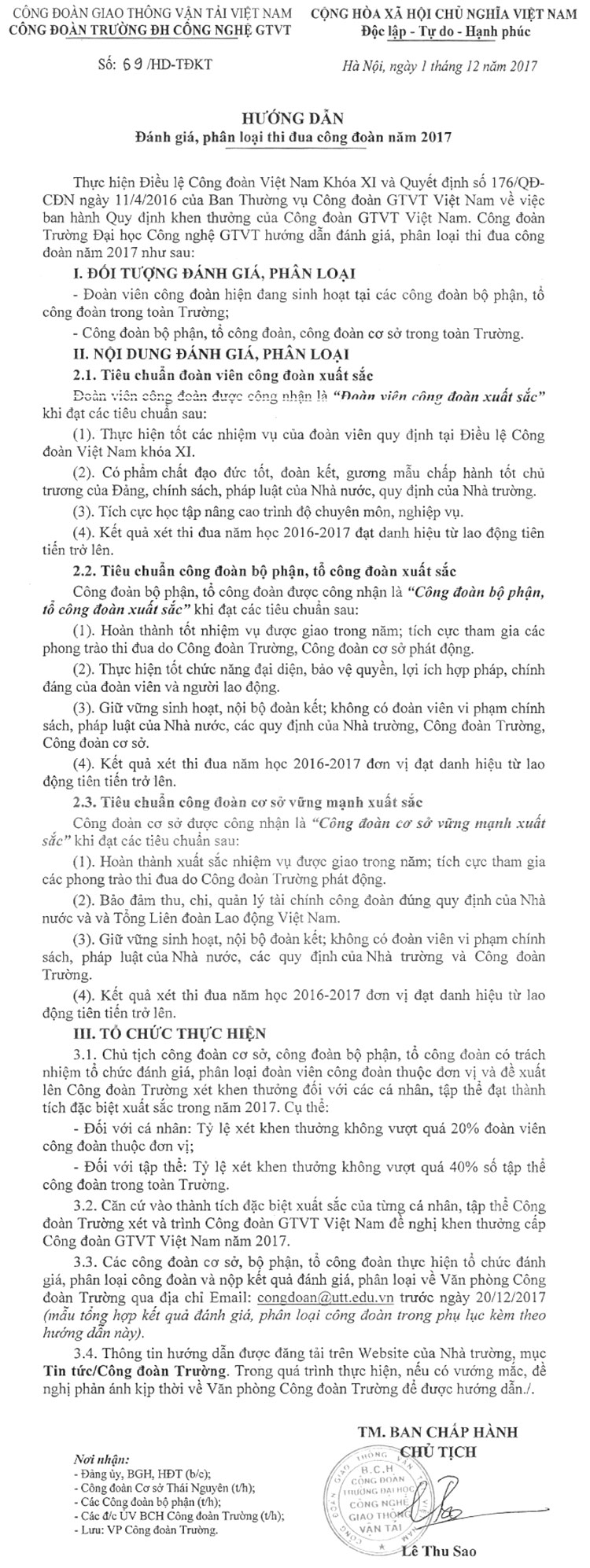 Hướng dẫn Đánh giá, phân loại thi đua công đoàn năm 2017 04/12/2017 16:12 File đính kèm Huong-dan-phan-loai-thi-dua-2017.doc