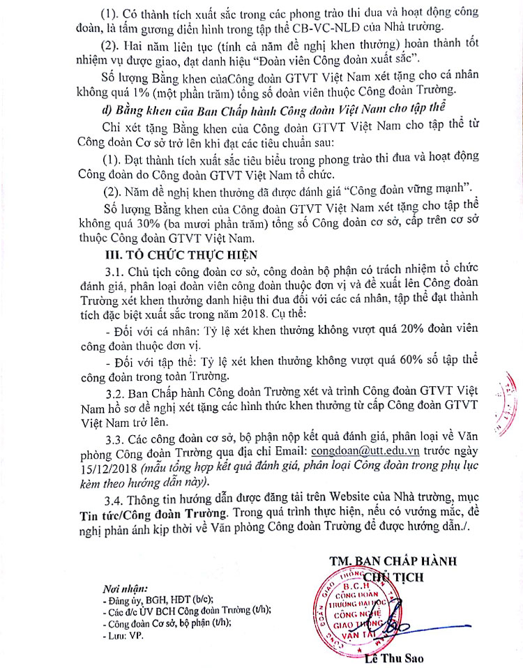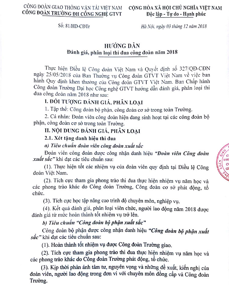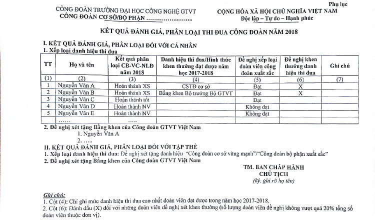 Hướng dẫn Đánh giá, phân loại thi đua công đoàn năm 2018