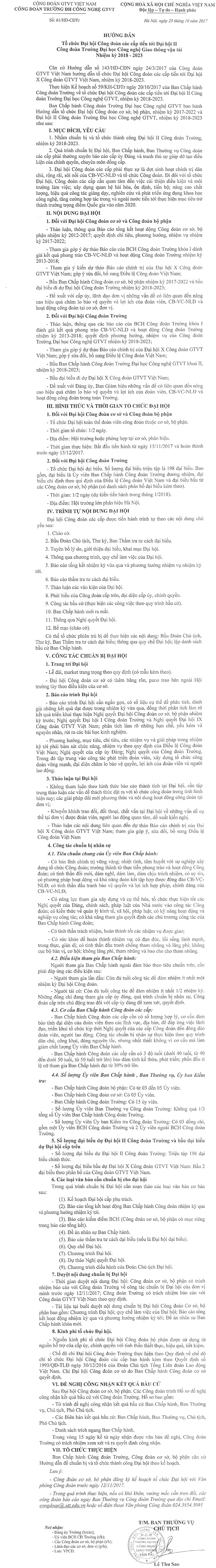 Hướng dẫn Tổ chức Đại hội Công đoàn các cấp tiến tới Đại hội II Công đoàn Trường Đại học Công nghệ GTVT Nhiệm kỳ 2018 - 2023 01/11/2017 08:11