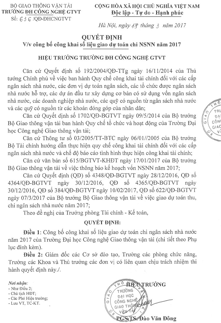 Quyết định Công bố công khai số liệu giao dự toán chi NSNN năm 2017 17/03/2017 16:03 File đính kèm 636-17.03.2017.pdf