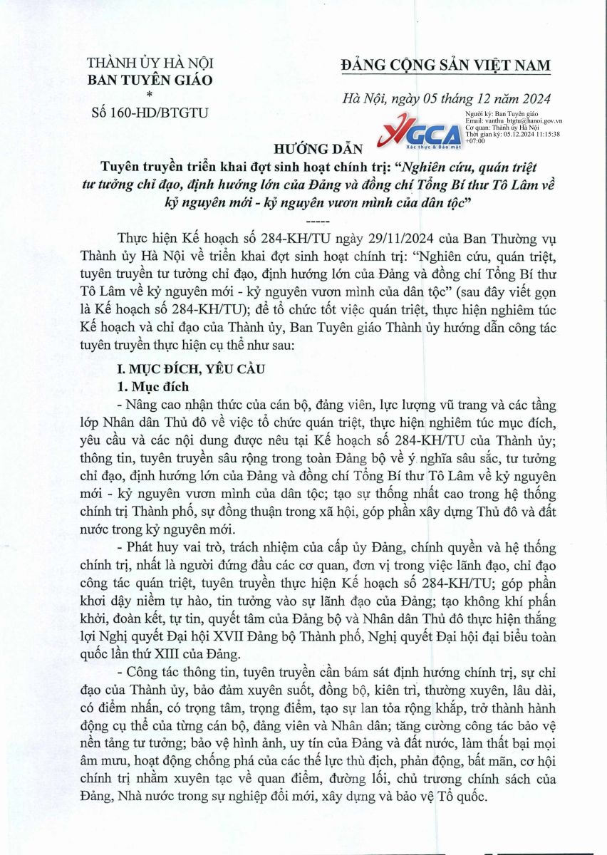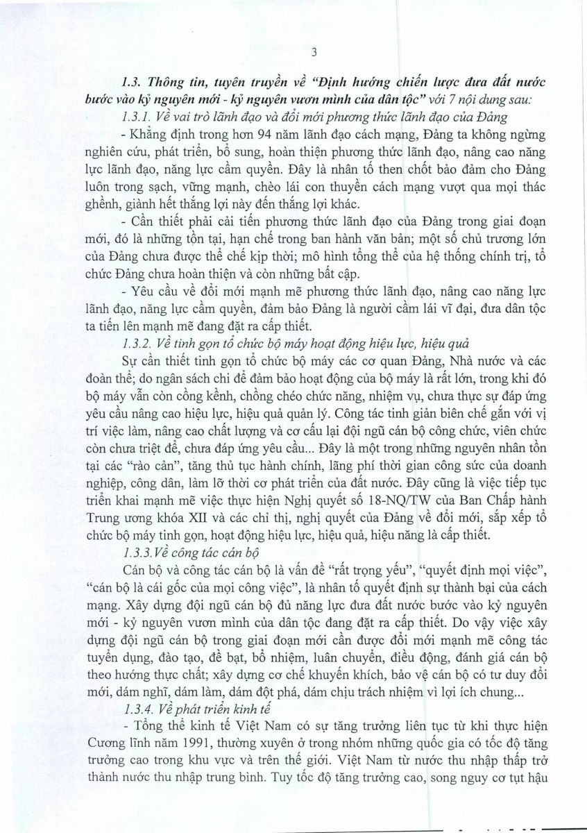 Hướng dẫn triển khai đợt sinh hoạt chính trị: Nghiên cứu, quán triệt tư tưởng chỉ đạo, định hướng lớn của Đảng và đồng chí TBT Tô Lâm về kỷ nguyên mới - kỷ nguyên vươn mình của dân tộc 06/12/2024 09:12