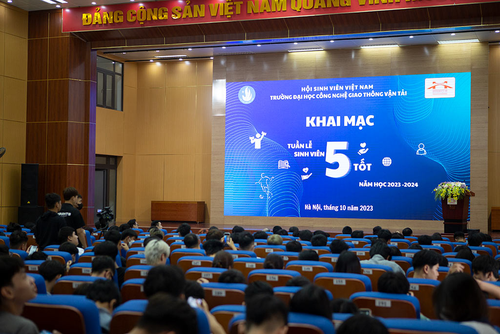 Tuần lễ sinh viên 5 tốt diễn ra từ ngày 23 đến 29/10/2023, gồm chuỗi các hoạt động: Học tập chuyên đề: “Tuổi trẻ Trường Đại học Công nghệ GTVT học tập và làm theo tư tưởng, đạo đức, phong cách Hồ Chí Minh”; Cuộc thi “Tìm hiểu về chủ nghĩa Mác – Lênin và tư tưởng Hồ Chí Minh”; Tập huấn kỹ năng, nghiệp vụ cho cán bộ Hội sinh viên và kỹ năng mềm cho sinh viên; Hoạt động tình nguyện “Đổi giấy lấy cây” lần thứ 3; Ngày hội “Sinh viên khỏe” lần thứ 2 năm 2023; Giải bóng đá nam sinh viên.