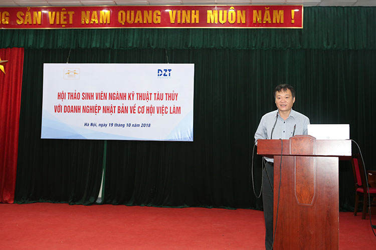 Phát biểu khai mạc chương trình, PGS.TS. Nguyễn Hoàng Long - Phó Hiệu trưởng Nhà trường cho biết Khoa Cơ khí đã triển khai mạnh mẽ công tác phối hợp giữa Nhà trường với Doanh nghiệp, trong những năm qua đã đạt được những kết quả rất khả quan; sinh viên Nhà trường được các doanh nghiệp, đặc biệt là các doanh nghiệp nước ngoài tin cậy và sử dụng lao động. PGS.TS. Nguyễn Hoàng Long mong muốn tại Hội thảo ngày hôm nay Công ty Daizo Tec - Nhật Bản và các bạn sinh viên ngành Máy tàu thủy nói riêng và Cơ khí nói chung sẽ trao đổi, chia sẻ thông tin một cách thẳng thắn và hiệu quả nhất; đặc biệt các bạn sinh viên hãy tận dụng tối đa thời gian ngày hôm nay để tìm hiểu và có được cơ hội việc làm tốt. Cuối cùng, PGS.TS. Nguyễn Hoàng Long thay mặt lãnh đạo Nhà trường cảm ơn Công ty Thiết kế tàu biển Daizo Tec - Nhật Bản, Khoa Cơ khí, Phòng KHCN-HTQT đã xây dựng chương trình hội thảo có ý nghĩa và rất cấp thiết để giúp cho các bạn sinh viên, Nhà trường cùng gắn kết với các doanh nghiệp một cách chặt chẽ.