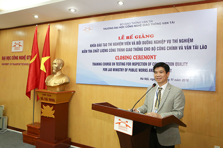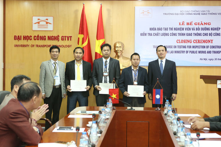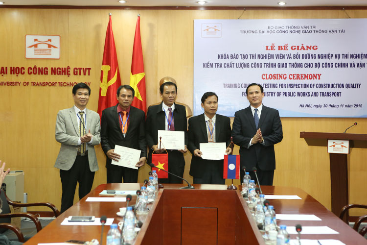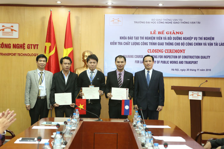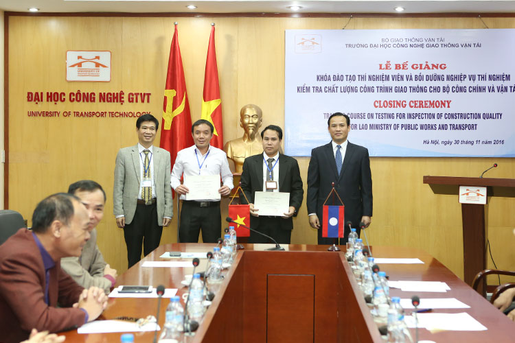 Sáng ngày 30/11/2016, Trường Đại học Công nghệ GTVT đã tổ chức Lễ bế giảng và trao chứng chỉ khoá đào tạo "Thí nghiệm viên và bồi dưỡng nghiệp vụ thí nghiệm kiểm tra chất lượng công trình giao thông cho cán bộ Bộ Công chính và Vận tải Lào".