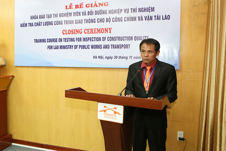 Đại diện 14 học viên của khoá học, Sitthixay Litthideth - Lớp trưởng đã gửi lời cảm ơn sâu sắc đến lãnh đạo Bộ Giao thông vận tải, Đại sứ quán Lào tại Việt Nam và Nhà trường đã tạo điều kiện cho các học viên tham gia khoá học đào tạo và mong rằng sẽ có cơ hội quay lại Việt Nam trong những khoá học sắp tới.