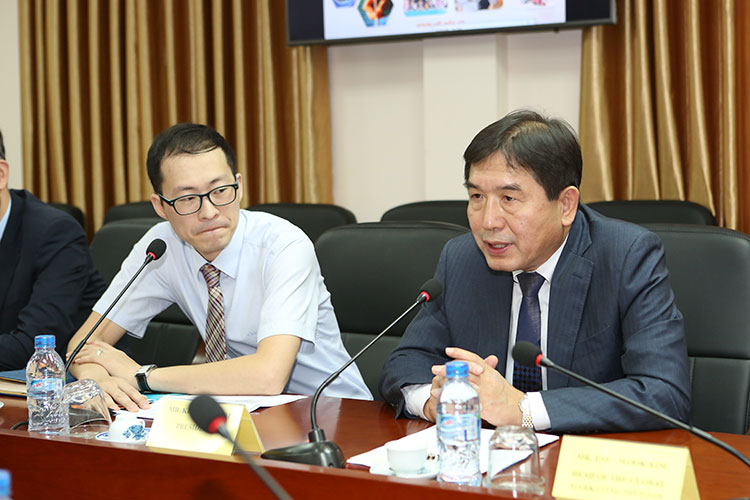 Ngài Chủ tịch Ki-Hwan Kim - Trưởng đoàn công tác của Viện nghiên cứu đường sắt Hàn Quốc cảm ơn sự tiếp đón chu đáo của Trường Đại học Công nghệ GTVT