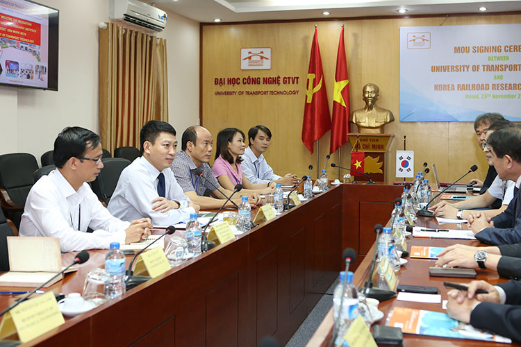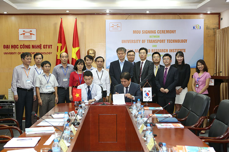 Sáng ngày 23/11/2016 tại Trường Đại học Công nghệ GTVT đã diễn ra Lễ ký kết thoả thuận hợp tác giữa Trường Đại học Công nghệ GTVT (UTT) và Viện nghiên cứu đường sắt Hàn Quốc (KRRI) nhằm tăng cường và thúc đẩy hợp tác khoa học kỹ thuật trong lĩnh vực đường sắt tại Việt Nam.