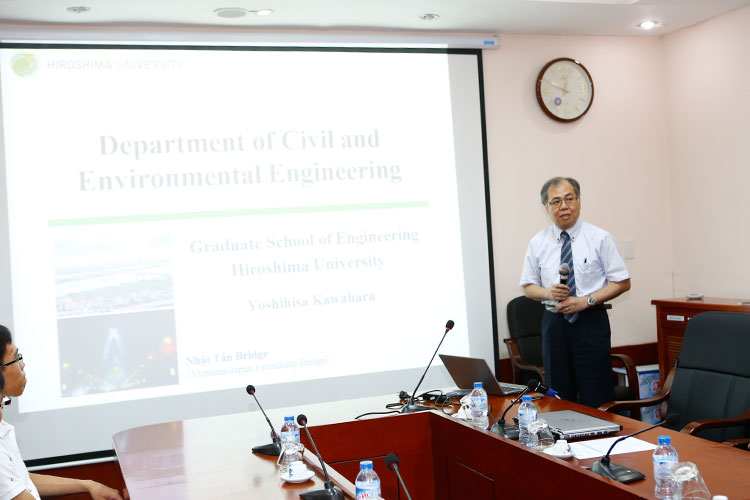 Đoàn công tác của Trường Đại học Hiroshima (Nhật Bản) có Giáo sư Yoshihisa Kawahara - Phó Hiệu trưởng làm Trưởng đoàn; Giáo sư Toru Takashina - Trưởng ban Quan hệ Quốc tế. Tiếp đoàn công tác về phía Trường Đại học Công nghệ GTVT có PGS.TS. Đào Văn Đông - Hiệu trưởng; TS. Vũ Ngọc Khiêm - Phó Hiệu trưởng; Lãnh đạo phòng Khoa học công nghệ - Hợp tác quốc tế, Khoa Công trình và đông đảo các giảng viên, sinh viên quan tâm tới chương trình trao đổi sinh viên và giảng viên theo học các trình độ Thạc sĩ, Tiến sĩ tại Nhật Bản tham dự.