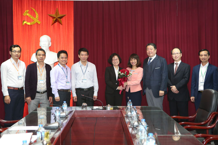 PGS.TS. Đào Văn Đông - Hiệu trưởng Trường Đại học Công nghệ GTVT (thứ 2 từ bên trái) chào mừng đoàn công tác S.S. Group - Nhật Bản tiếp tục sang làm việc tại Trường