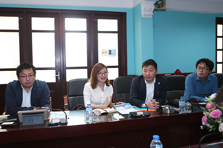 Cũng trong buổi làm việc, TS. Nguyễn Mạnh Hùng - Chủ tịch Hội đồng trường cho biết Trường Đại học Công nghệ GTVT có nhiều chương trình đào tạo phù hợp với các yêu cầu tuyển dụng của tập đoàn DAIKI, cũng như Trường Đại học Công nghệ GTVT luôn chú trọng tới việc đào tạo nâng cao trình độ, chuyên môn và ngoại ngữ cho sinh viên. Đặc biêt, Nhà trường liên tục mở các lớp đào tạo tiếng Nhật từ trình độ N5 đến N3 nhằm đáp ứng tốt nhất các yêu cầu tuyển dụng của doanh nghiệp Nhật Bản. TS. Nguyễn Mạnh Hùng khẳng định Nhà trường luôn mong muốn hợp tác với Tập đoàn DAIKI thành lập Trung tâm Nhật ngữ tại Trường Đại học Công nghệ GTVT nhằm mở rộng mô hình đào tạo tiếng Nhật tại Trường Đại học Công nghệ GTVT.