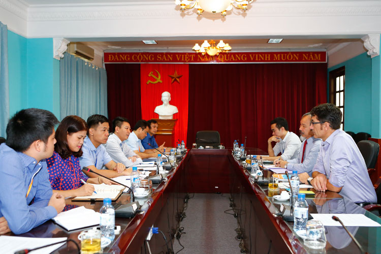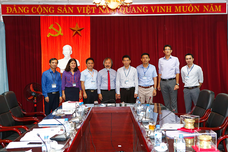 GS.TS. Diệp Thế Hùng - Phó chủ tịch phụ trách hợp tác quốc tế (ở giữa bên phải) đại diện Đại học Cergy Pontoise sang thăm và làm việc với Trường Đại học Công nghệ GTVT