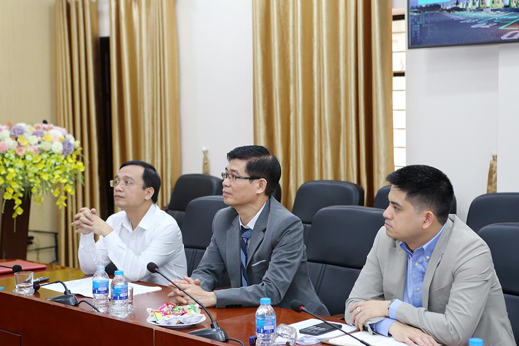 Ông Lê Hoàng Hải- Giám đốc Trung tâm phát triển trạm pin, Công ty Vinfast trao đổi các thông tin về hoạt động của đơn vị và nội dung hợp tác giữa hai bên