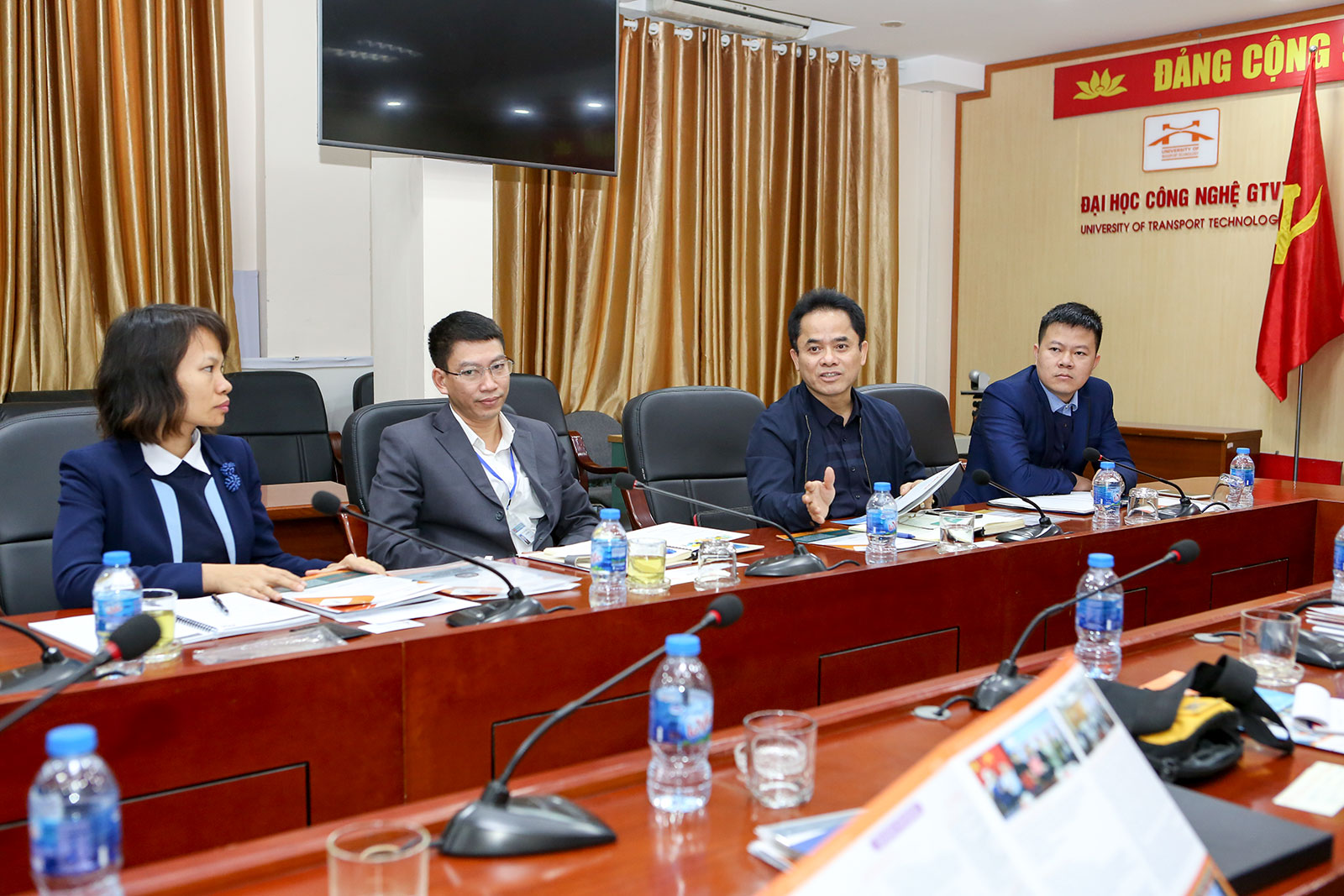 Về phía Đại sứ quán Ấn Độ tại Việt Nam có Ông Sujit Biwas - Bí thư thứ 2; đại diện cho Viện Công nghệ Ấn Độ tại Delhi có Giáo sư Sudipto Mukherjee, phụ trách chương trình học bổng tiến sĩ dành cho ASEAN tại IITs. Về phía Trường Đại học Công nghệ GTVT có PGS.TS. Đào Văn Đông - Hiệu trưởng, PGS.TS. Vũ Ngọc Khiêm - Phó Hiệu trưởng, cùng đại diện lãnh đạo Phòng Khoa học Công nghệ & Hợp tác quốc tế, Khoa Công trình, Khoa Cơ khí, Khoa Công nghệ thông tin.