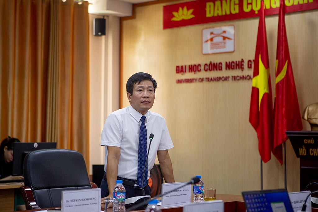 Tại buổi làm việc, PGS.TS. Nguyễn Hoàng Long - Hiệu trưởng Nhà trường giới thiệu tổng quan về Trường Đại học Công nghệ GTVT, những dự án hợp tác, hỗ trợ nổi bật của các đối tác Nhật Bản cho Trường trong thời gian qua. Hiện nay, Nhà trường đang tập trung đào tạo nhiều ngành trọng điểm như cơ khí, cơ khí ô tô, điện tử, cơ điện tử; các chuyên ngành còn lại logistics, vận tải, công nghệ thông tin, công trình, kinh tế cũng chiếm tỷ trọng lớn.