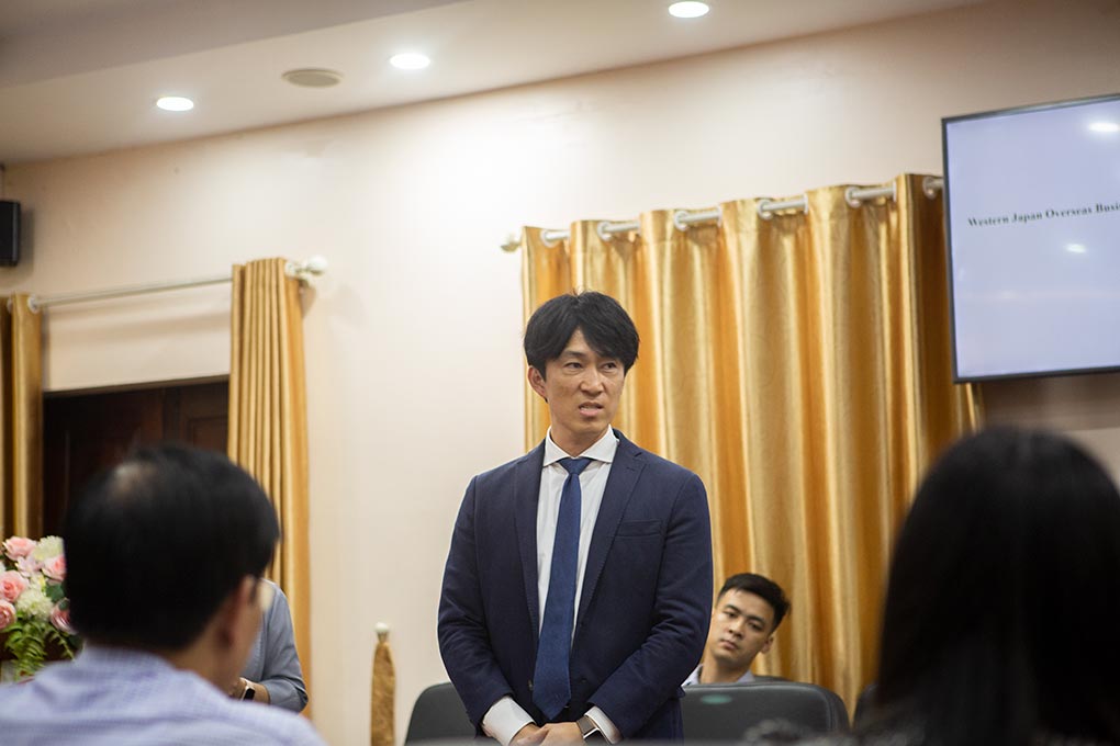 Ông Ikeda JunJi - Chủ tịch Nghiệp đoàn Nishinihon giới thiệu tổng quan về đơn vị mình trong buổi làm việc
