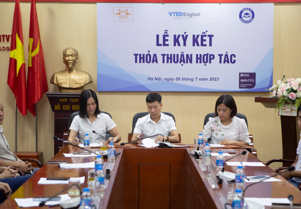 Ngày 06/7 tại Hà Nội, Trường ĐH Công nghệ GTVT đã ký kết biên bản thoả thuận hợp tác với Công ty TNHH Công nghệ Giáo dục Đông A và Công ty TNHH Thương mại & Phát triển Giáo dục Việt Nam (VTED) dưới sự chứng kiến của British Council Việt Nam nhằm triển khai các hoạt động đào tạo phục vụ yêu cầu về chuẩn đầu ra Tiếng Anh cho sinh viên.