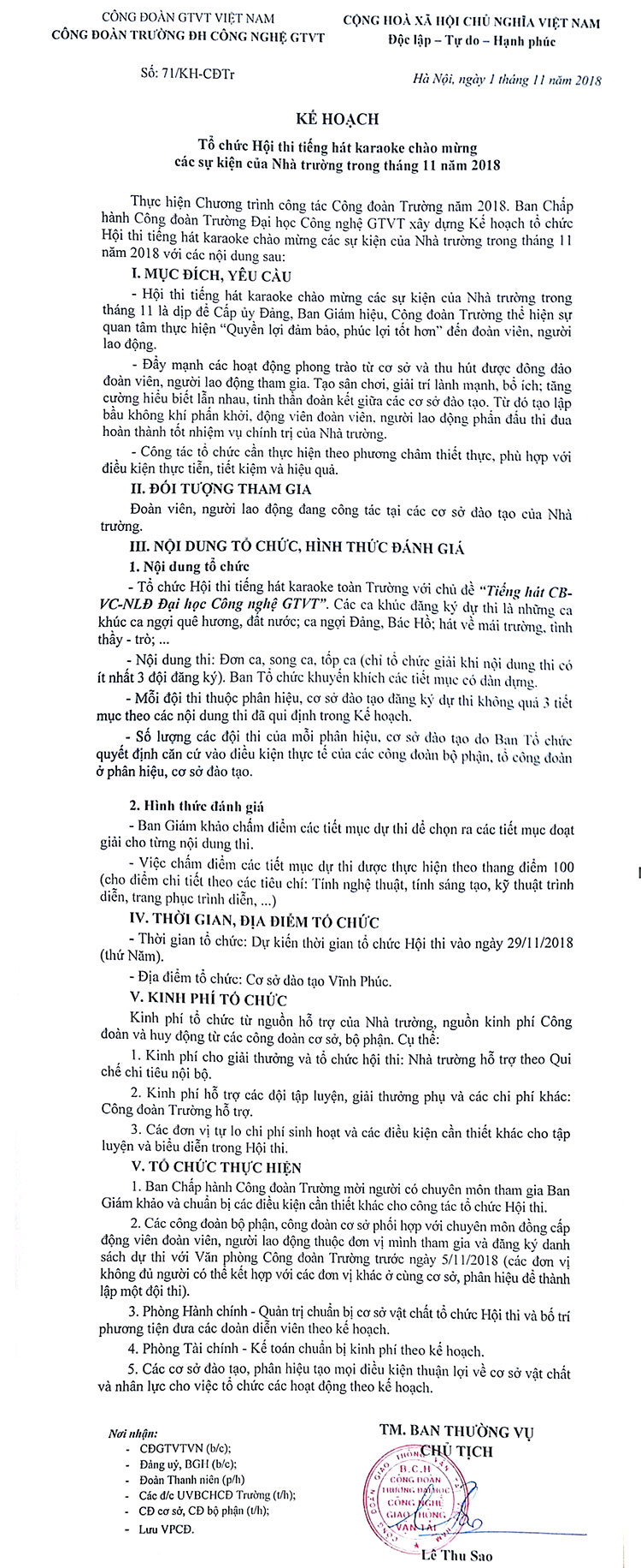 Kế hoạch Hội thi tiếng hát karaoke chào mừng các sự kiện của Nhà trường trong tháng 11 năm 2018 01/11/2018 08:11