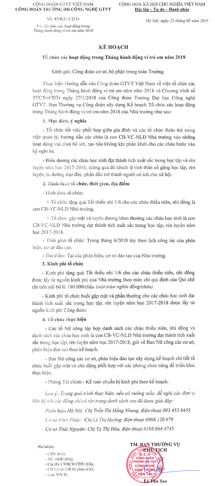 Kế hoạch Tổ chức các hoạt động trong Tháng hành động vì trẻ em năm 2018